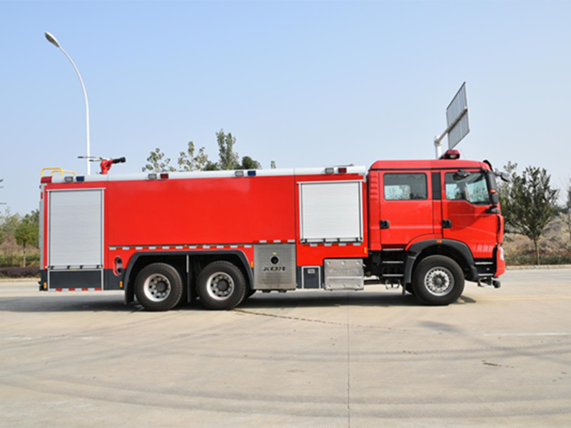 豪沃TX7后雙橋泡沫消防車是由二類汽車底盤、罐體、水泵、管路、儀表電路系統等部件組成,該車裝配鋁合金后爬梯(可拆卸),泵房在整車尾部,罐體為鋼板焊接式,載液量17.0方(水14方/泡沫3方),水罐材質為優質碳鋼板,水罐內部做防腐處理,泡沫罐為不銹鋼材質。該車裝備CB10/80常壓消防泵,PL8/64兩用消防炮。