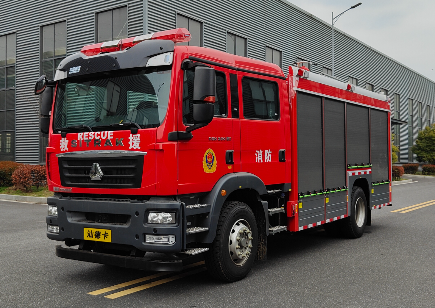 1.4 | 采用重汽汕德卡ZZ5206N471GF5 4X2消防車專用底盤,排放標準為國六,發動機功率257kW(350HP)。 |