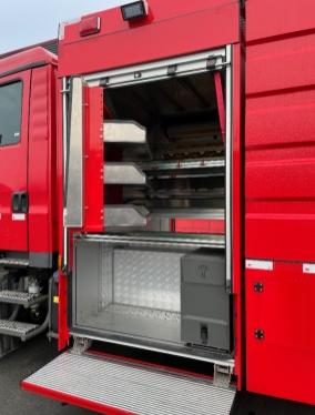 3.2 | 儲(chǔ)物箱:車(chē)輛設(shè)有(5個(gè))防水、防塵的鋁合金卷簾門(mén),卷簾門(mén)觸發(fā)電磁傳感器自動(dòng)開(kāi)關(guān)LED照明;在兩側(cè)卷簾門(mén)下方設(shè)有翻轉(zhuǎn)腳踏板,踏板行程由氣彈簧控制,踏板由整塊特制高強(qiáng)度鋁型材裁剪并與附件無(wú)焊接組裝而成、站立面防滑,每個(gè)踏板可稱(chēng)重靜載荷200kg,便于取放儲(chǔ)物箱內(nèi)器材;儲(chǔ)物箱內(nèi)科學(xué)合理放置各類(lèi)器材,固定牢靠、取放便捷。 |