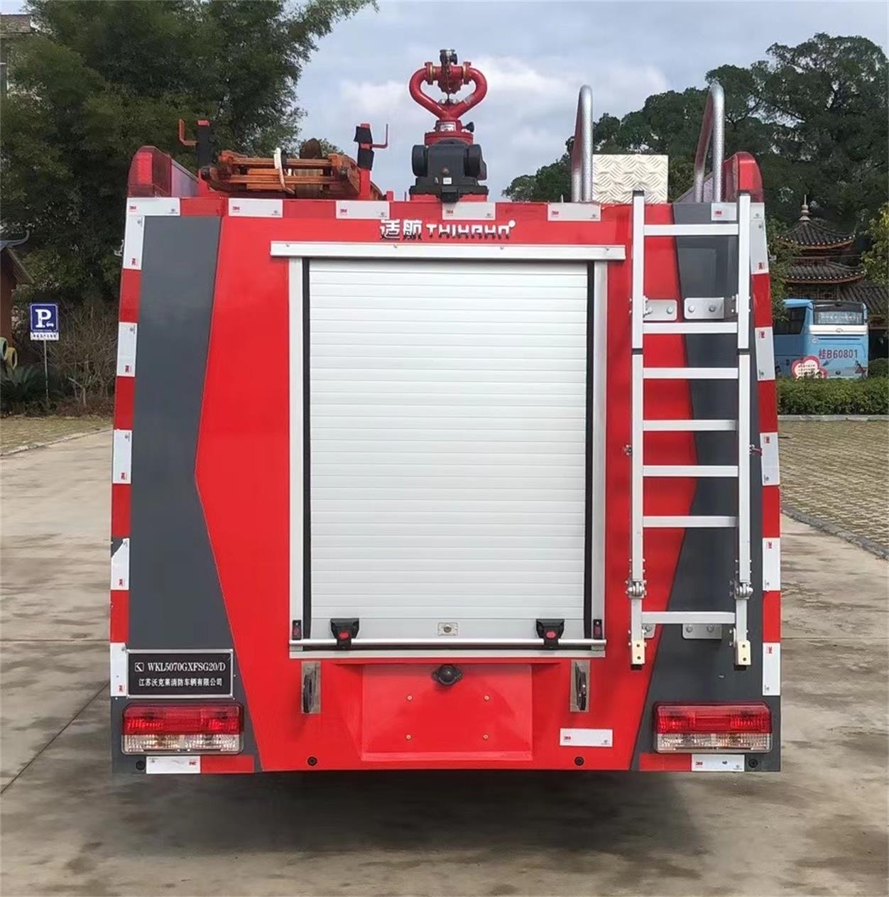 3.3 | 車后部設有登頂爬梯,能使消防人員迅速登上車頂,車頂鋪設滑板以確保人員在車頂安全行走,梯子和踏板站立面均做防滑處理。 |